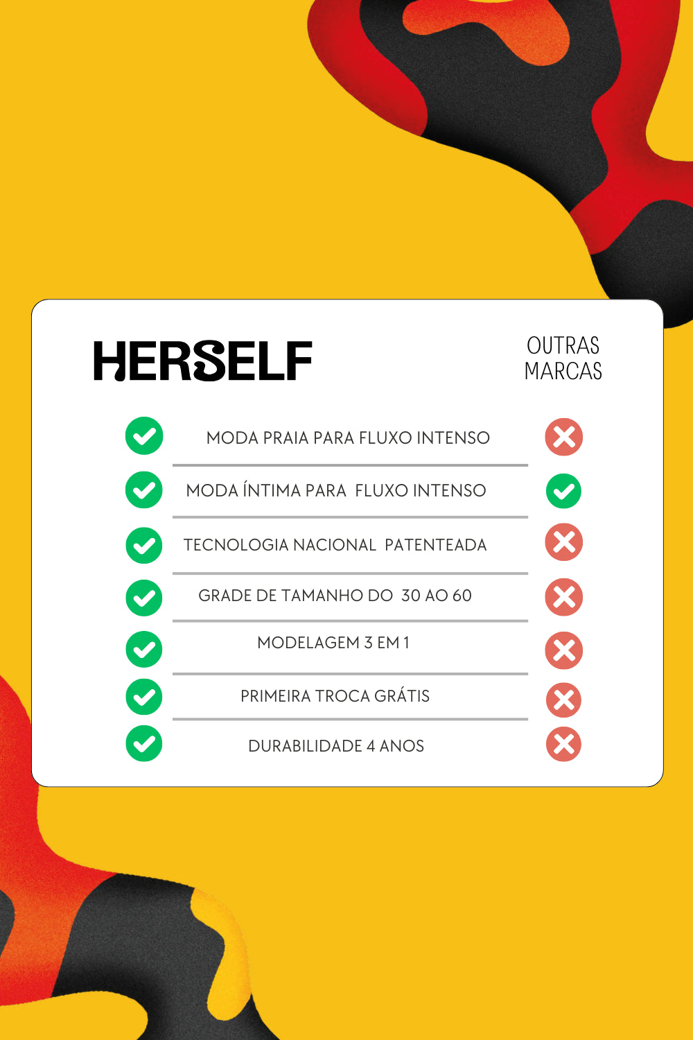 Nossa tecnologia inovadora absorve o fluxo menstrual e retém na peça, mesmo durante o uso na água, garantindo proteção durante todo o dia.
